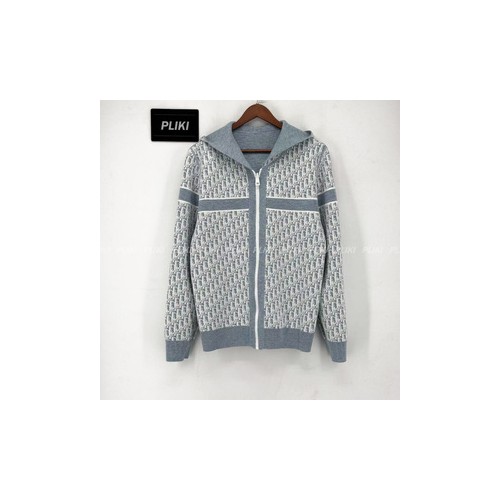 디올 리버서블 후드 가디건 블루 Dior Oblique 모티브 캐시미어 블렌드 니트+0원