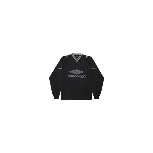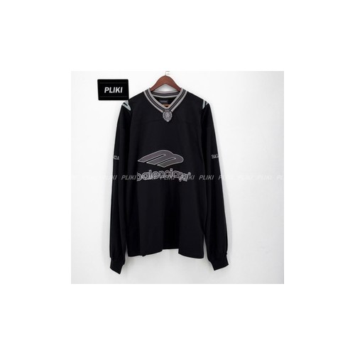 발렌시아가 남성 3b 풋볼 롱 슬리브 V넥 티셔츠 블랙/앤트러사이트+0원