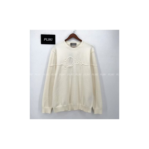 디올 Dior 리본 스웨터 화이트 울 저지