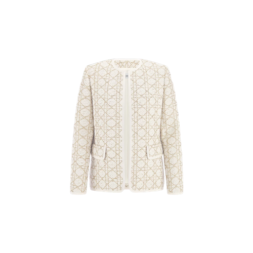 디올 매크로까나쥬 레귤러 핏 재킷 화이트 & 골드 톤 울 블렌드 트위드+0원