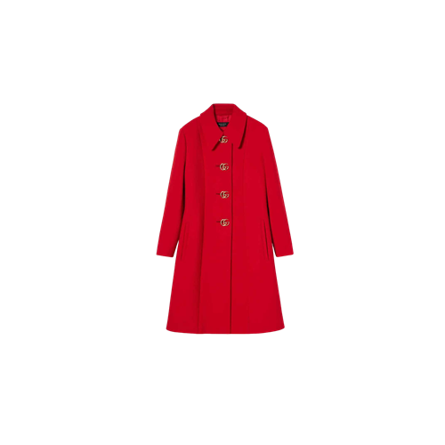 구찌 더블 G 버튼이 있는 울 나떼 코트 레드