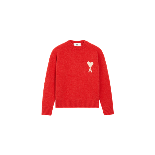아미 레드 알파카 아미 드 하트 크루넥 스웨터 레드 카민 오프 화이트+0원