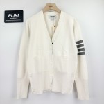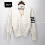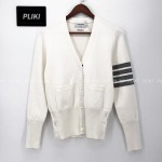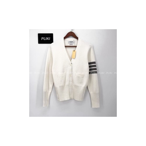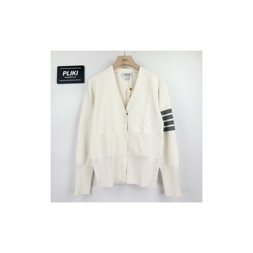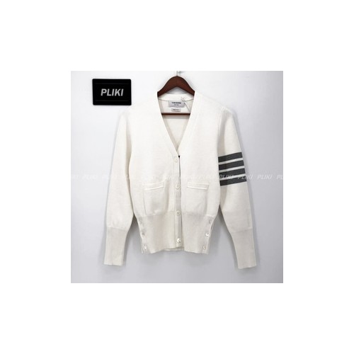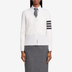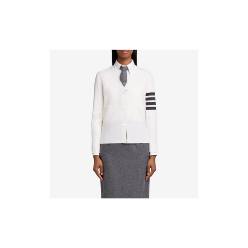 톰브라운 화이트 밀라노스티치 파인 메리노 울 4-바 클래식 브이넥 카디건+0원