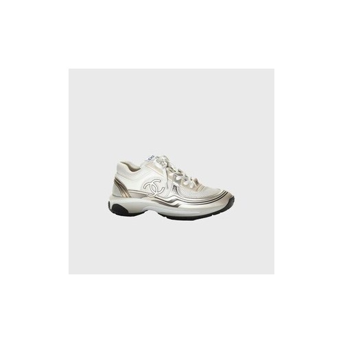 샤넬 패브릭 라미네이티드 화이트/실버 스니커즈