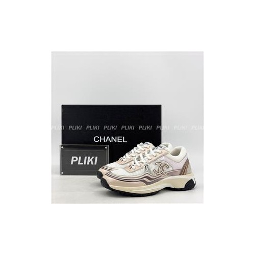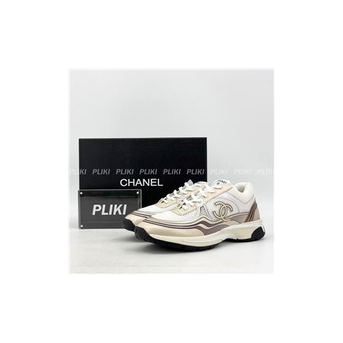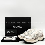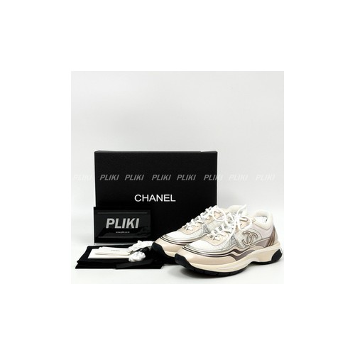 샤넬 패브릭 라미네이티드 아이보리/실버 스니커즈